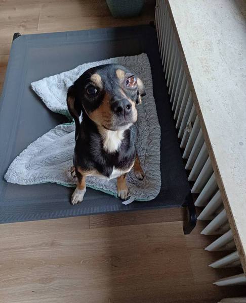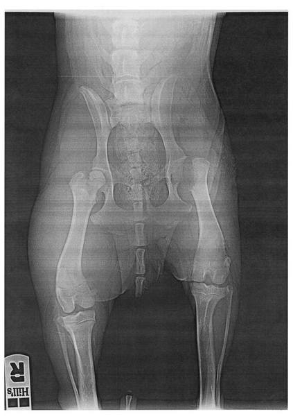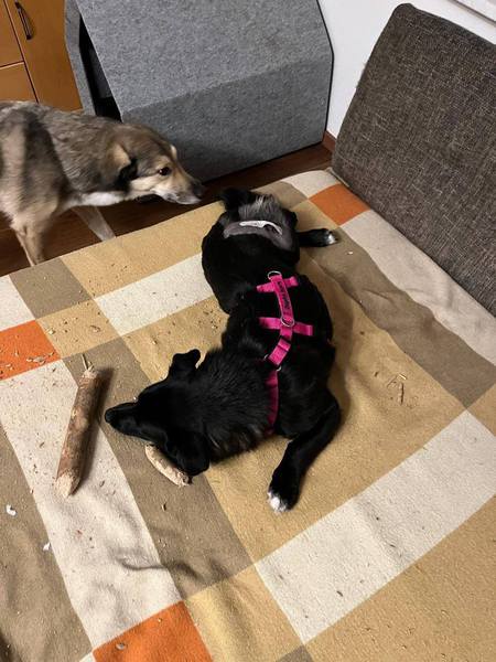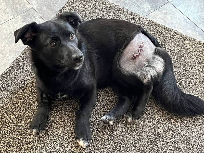 Die Femurkopfresektion am linken Bein hat sie super überstanden und das Fell wächst schon wieder drüber.