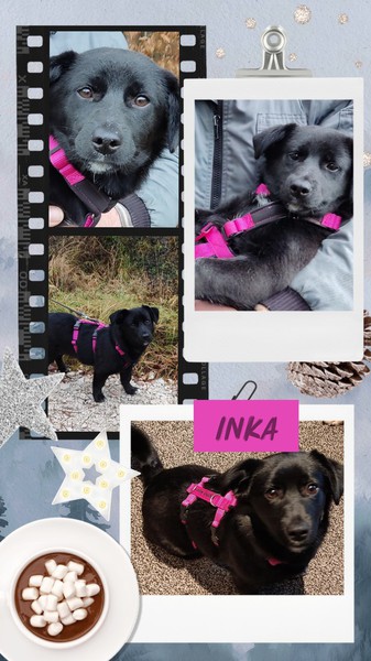 Inka ist gutmütig, zutraulich, bei Fremden anfänglich etwas vorsichtig, verspielt, neugierig, gehorsam; liebt Spaziergänge, sie sucht immer die Nähe ihrer Menschen, ist stubenrein, beherrscht schon einige Grundkommandos (Sitz, Stopp, Zu mir)