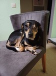 Die hübsche Dame hat 40 cm Schulterhöhe und wiegt 9 kg.